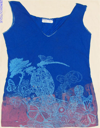 Spycke by Vallois Loic on a S royal v-neck tank top. Printed July 2010. Sewn by Mary Hoopey, October 2010.